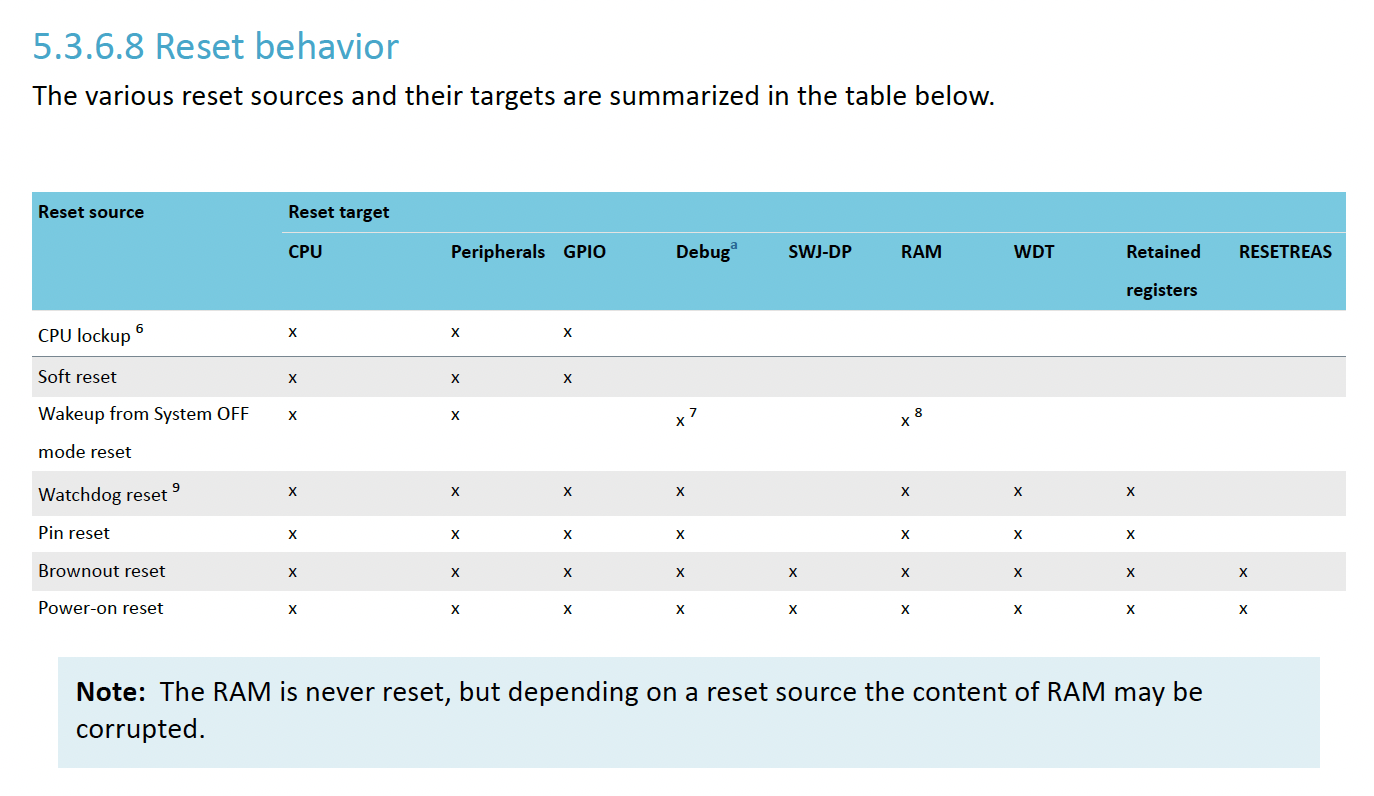 | Nordic Semiconductor | NRF52 | RESETREAS |